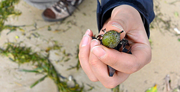 海草のアマモがはえる場所は、「海のゆりかご」と呼ばれるほどたくさんの生き物が集まります。そっと触れて、生き物のつながりを感じてください。
