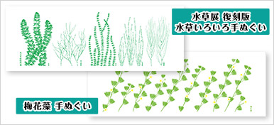 | 価格 | 上「水草いろいろ 手ぬぐい」350円 下「梅花藻 手ぬぐい」400円 |