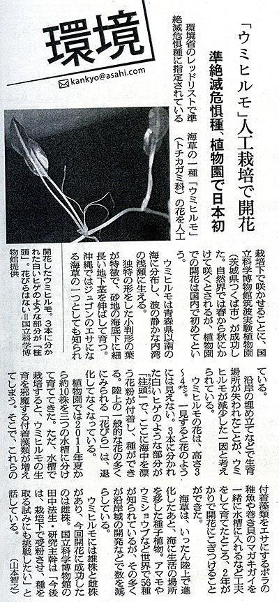 6/13、7/9でもふれましたが、筑波実験植物園でウミヒルモという海草が開花したことが、