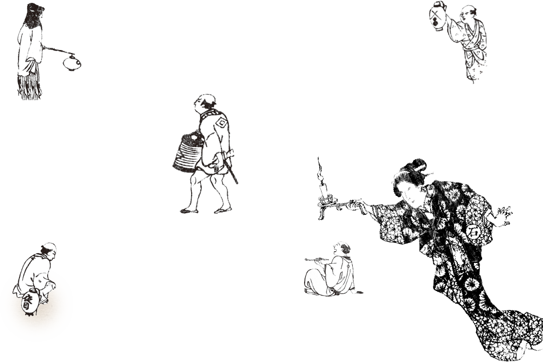 「江戸のあかり」展示の様子人々が普段の生活の中で「あかり」を使うようになったのは江戸時代です。屋内用の行灯や燭台、小型の小さなあかり「ひょうそく」や大広間に上から吊るす八間(はちけん)、携帯用の小型の手燭や提灯など、生活の様々なシーンで使う「あかり」が工夫され、暮らしの中で活用されました。あかりの普及は、人々の生活や文化の幅を広げたのです。