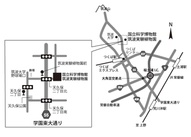 5番乗り場:テクノパーク大穂行き「筑波実験植物園前」下車徒歩2分