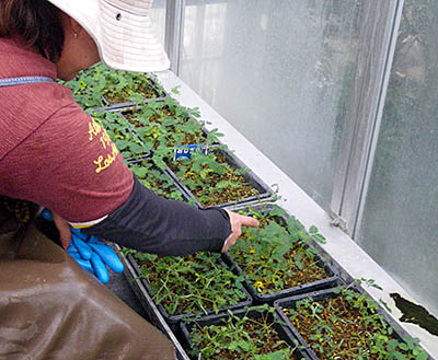 まもなく始まる「さわろう!植物展」に合わせて,温室担当の小林さんがオジギソウを育成しています。ちょっと裏話をご紹介。