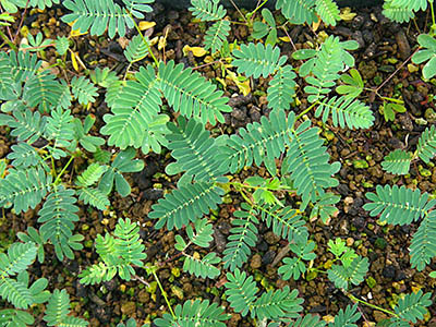 育成中のオジギソウには,ほとんどトゲは目立たない。