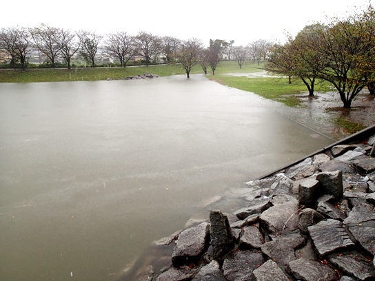 今回の台風では大雨も重なり、よく行く職場近くの公園の芝生広場も池のようになってしまい、同じく近くの川も増水して危険を感じるほどでした。