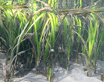 海草のアマモがはえる場所は、「海のゆりかご」と呼ばれるほどたくさんの生き物が集まります。そっと触れて、生き物のつながりを感じてください。