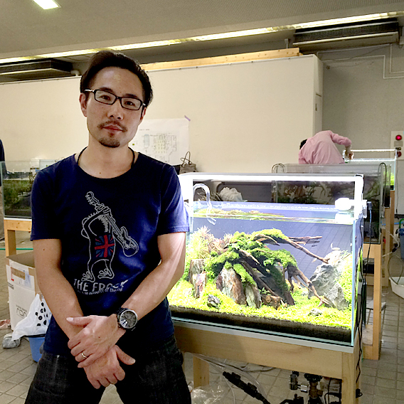 力持ちで繊細な 水草レイアウター 総勢14人の作品が会場に並びます。
