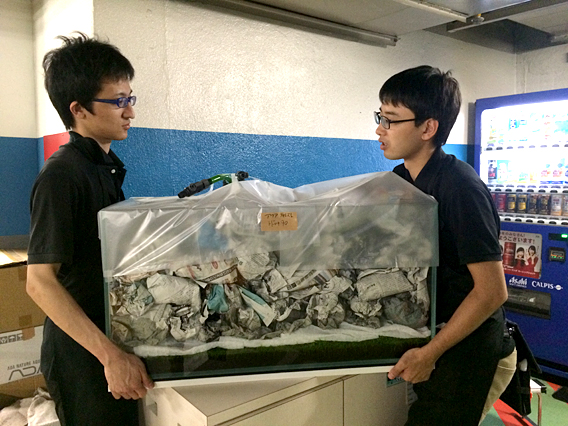 教育棟で展示する水槽を レイアウターの皆さんから預かってきました!