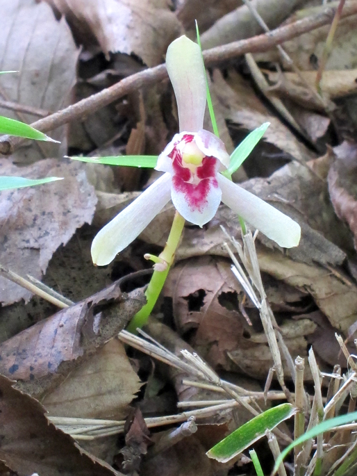 こうした方法で生きぬく植物のひとつがラン科のマヤラン(写真1)。お花屋さんにならぶシンビジウムや里山の早春を彩るシュンランと同じ仲間です。マヤランが寄生する菌の遺伝子を調べたところ、ベニタケ科やロウタケ科のキノコでした。ところがこれらのキノコはマツ科やブナ科などの木とも共生し、木から栄養をもらっています。つまり、木が光合成して作った栄養の一部を菌が利用し、さらにその一部を菌からマヤランが奪う栄養のネットワークがあるのです。マヤランのいのちを支えているのは、実はまわりの木だったのです。