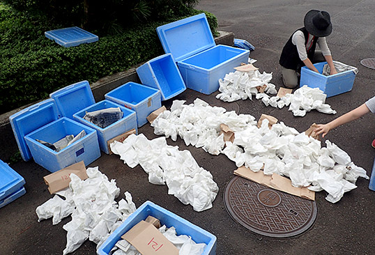 きのこ展までいよいよあと数日。展示に向けて、きのこ採りを本格的にスタートしました。泊りがけのきのこ採りも行いましたが、殆どのきのこはつくば市内で採っています。1週間かけて採り続け、名前をつけて仕分けして、あとは冷蔵室に保管します。