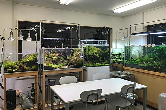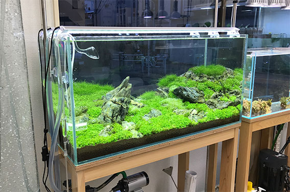 現在の制作工房では、水草展へ展示する水槽を準備中です!
