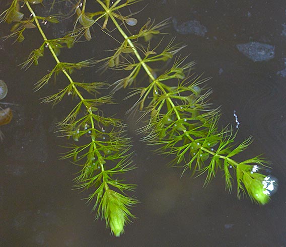 天然記念物「宝蔵寺沼ムジナモ自生地」からやってきました。よーくみると、葉の一部が二枚貝のようになっていて、ミジンコなどを捕らえる食虫水草です。