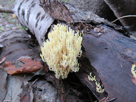 これは「フサヒメホウキタケ」。名前にホウキタケと付きますが、進化的には全く異なるグループで、こんなサンゴのような見かけをしているにもかかわらず、ベニタケ類(ハツタケや最近中毒例が報じられたニセクロハツなどを含むグループ)に近縁な種類です。