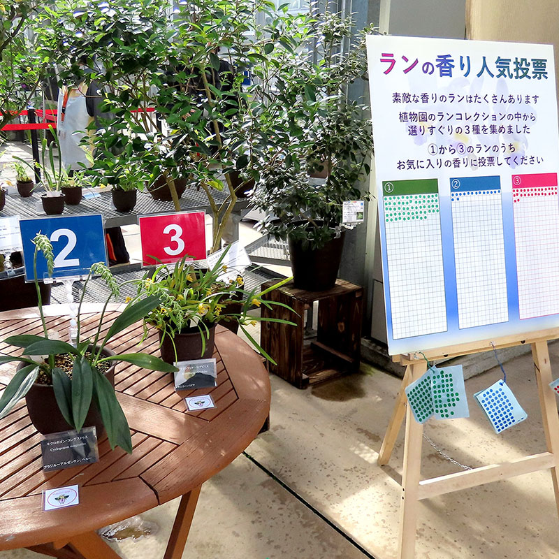 ランはあらゆる植物の中で最も香りが多彩です。好きなランの香りを選んだり、どんな動物がランの香りに誘われるのか考えたり・・・クイズ感覚で楽しみながらおくつろぎください。