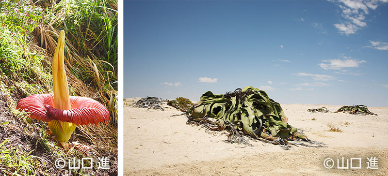 山口進氏はラン以外にも、植物の驚くべき生態を世界各地で記録しました。当園でも栽培する希少植物、ショクダイオオコンニャクとキソウテンガイの貴重な野生の姿を収めた作品を展示します。