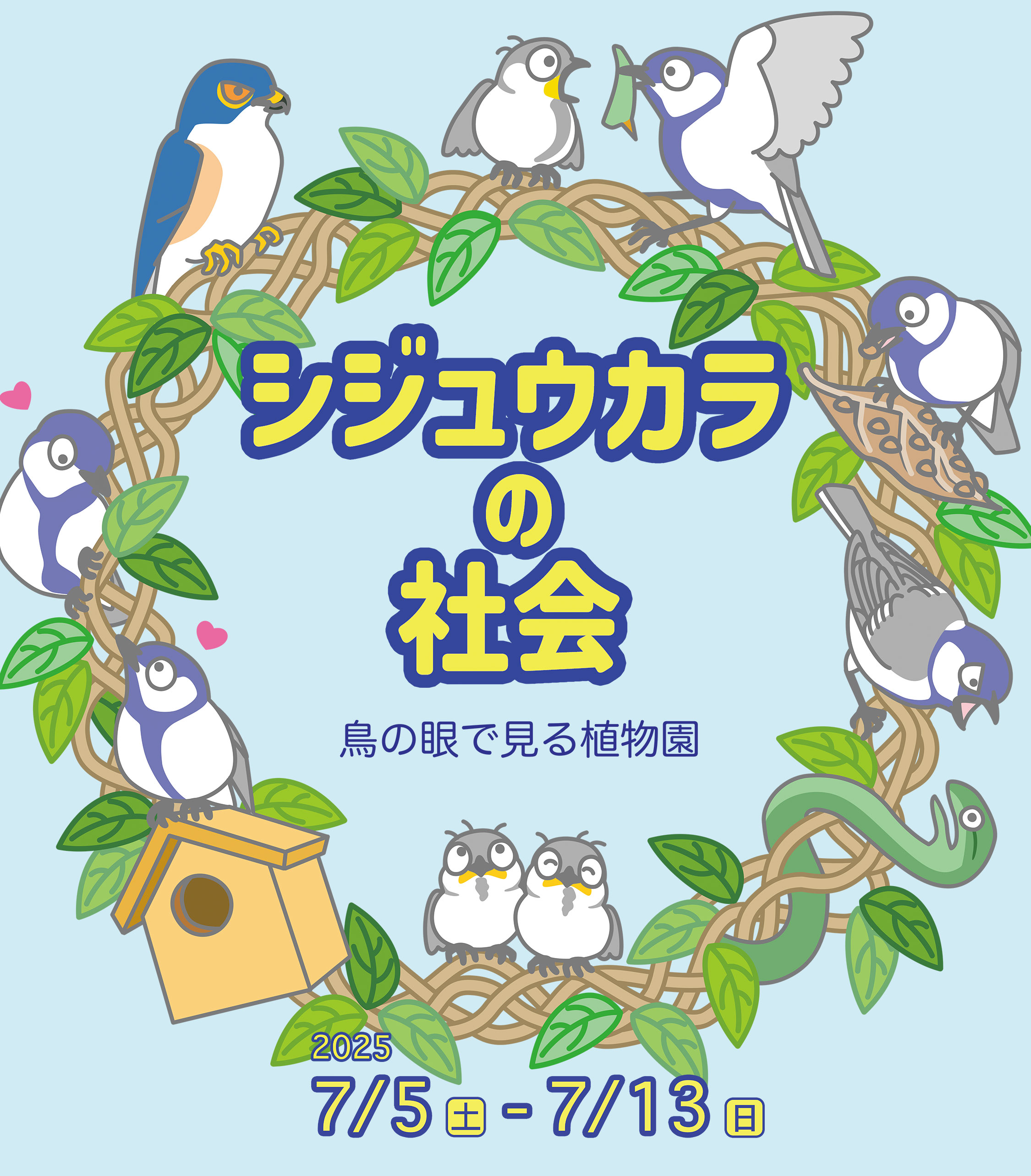 筑波実験植物園では14年間、巣箱をかけてシジュウカラの社会に関する調査が続けられてきました。本企画展では、全国的にも類を見ない園内全繁殖個体標識調査の成果を分かりやすく紹介し、生まれ落ちてから成長し、ひとり立ちし、さらに次の世代を生み出すまで、厳しい自然のなかで巧みに生きていくシジュウカラの姿を貴重なデータから解説します。また、この展示を通じてそこに生きている生き物を観察し、学ぶ、といったフィールドミュージアムとしての植物園の多面的な楽しみ方を提案します。