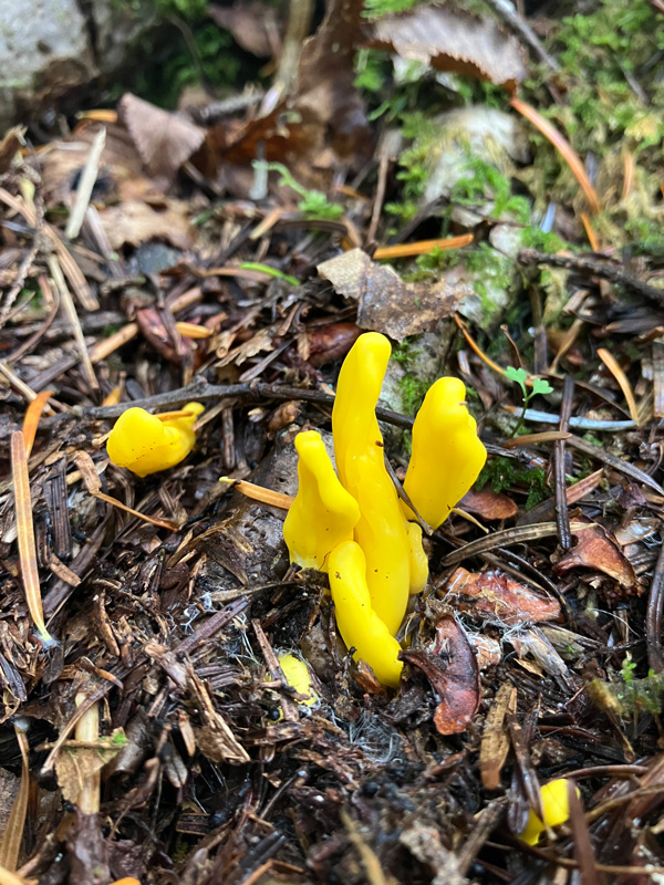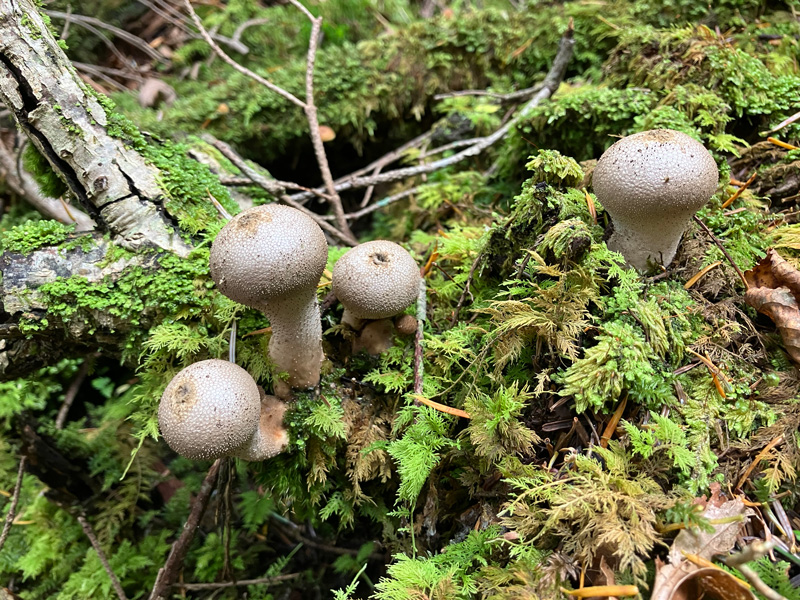 ホコリタケ属のきのこです。ホコリタケ属の学名はLycoperdon。これには「おおかみの〇〇〇」という意味があります。頂上の小さな穴からホコリ状の胞子を吹き出す様子から名づけられたこの属名。〇にひらがなを入れて正解を完成させましょう。正解は来週のブログにて。ただしアップは月曜日以降になります。