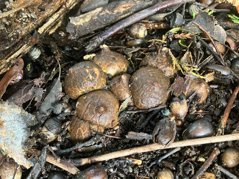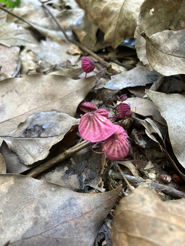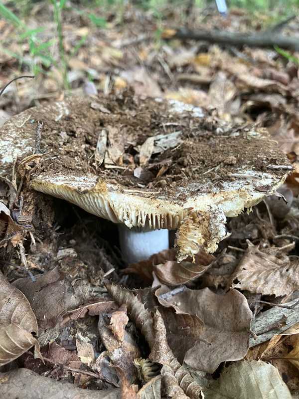 土を持ち上げるようにして生えるアイバシロハツ。 残念ながら一番人気の「タマゴタケ」は最初の週末には生えていませんでしたが、もしかしたら今週中にまた生え始めるかもしれません。