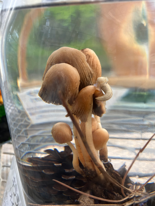 前回のクイズ。まず、密教で使われるある道具に似ているきのこの名前は「サンコタケ」でした!「三鈷」という道具なのですが、ぜひネットで検索してみてください。きのこ展の会場では三鈷のような道具も展示しています。