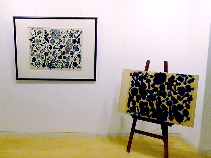 作家によるきのこ木版画作品、水彩画など多様な作品を展示します。