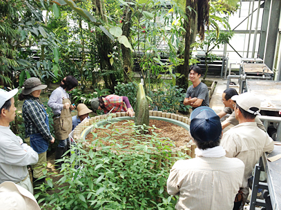 国立科学博物館筑波実験植物園では、世界最大級の「花」といわれるショクダイオオコンニャクが2012年、2014年、2016年、2018年、2020年、2023年と開花しました。世界でも開花がまれで、しかも咲いて2日目には閉じ始めることから、花を見るチャンスはめったにありません。これまでの開花までの成長のようすや開花した姿をぜひごらんください。