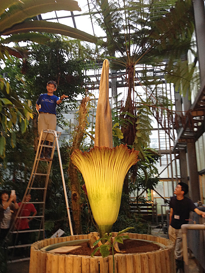 18:30撮影。前回の開花も笑顔で見守った遊川先生の、とびきりの笑顔を今年も撮影できました!
