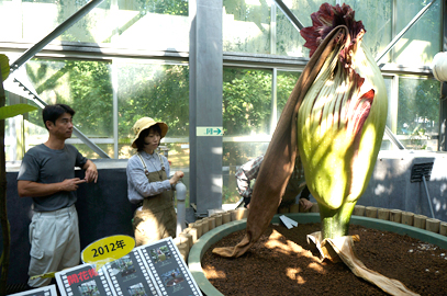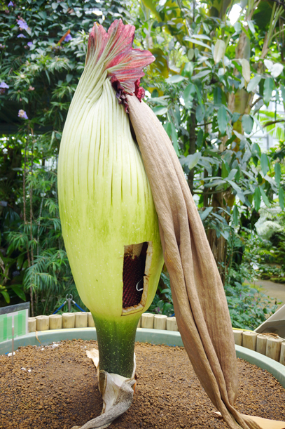 付属体が倒れたショクダイオオコンニャク。今回は不思議なことがたくさんありました。