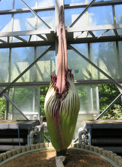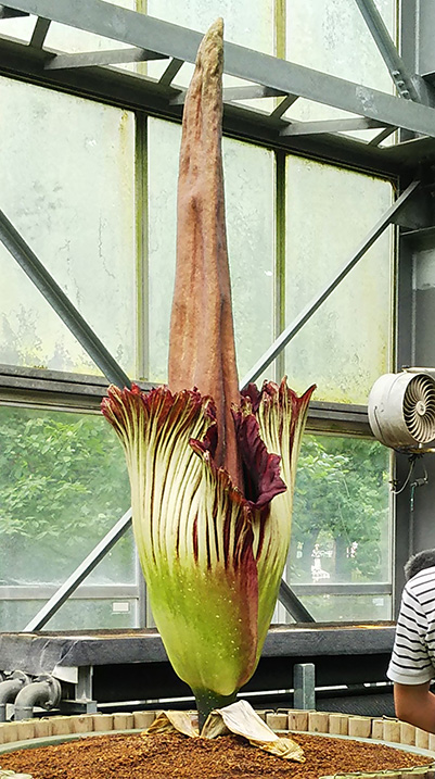 ショクダイオオコンニャクを展示している熱帯雨林温室前には、葉挿しによる増殖中のコンニャクなども展示しています。