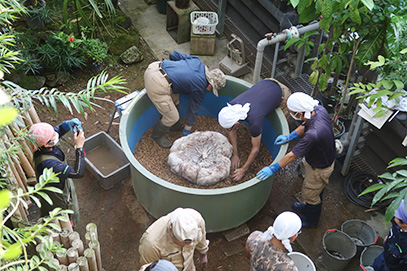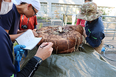 イモのサイズは最大直径71cm、厚み30cm、重さ67kgでした。