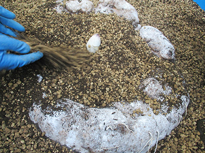 掘り出したイモには新芽が