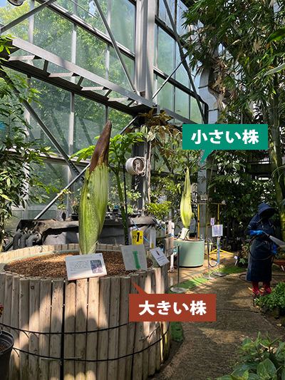 昨日からの伸びは5cmと、かなり成長が落ち着いてきました。こちらの株は当園では初開花のため、何時ごろから仏炎苞がひらきだすのか検討がつきません。