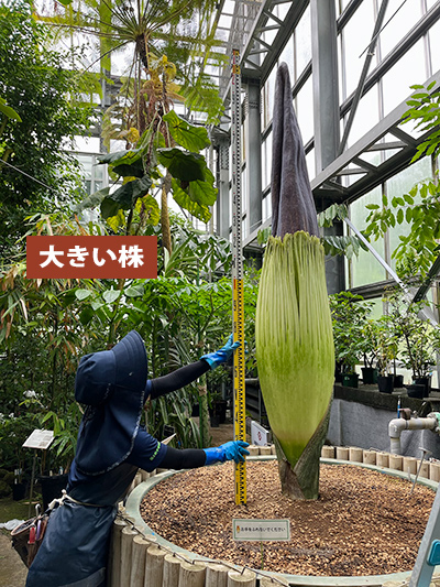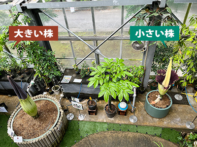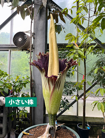 金曜夜に咲いたショクダイオオコンニャクの小さい株は、
