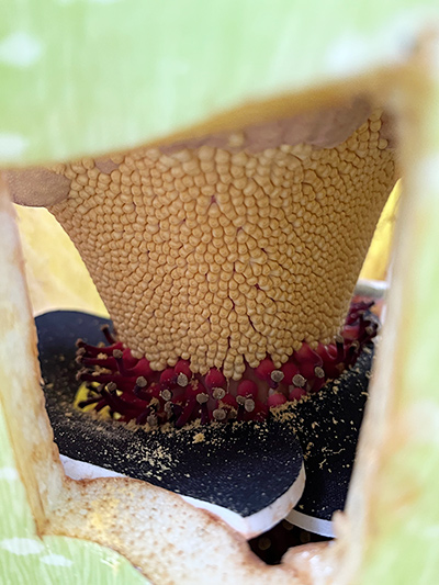 仏炎苞を一部カットして中にある花をのぞいた様子。