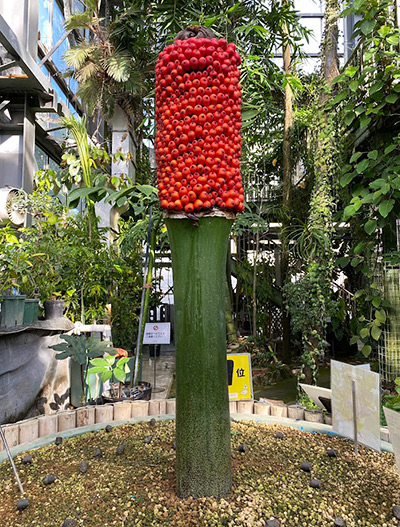 この5ヶ月間、果実の成長が見守れて幸せでした。そして、種をまき、発芽を見守るのも楽しみです。ショクダイオオコンニャクの生活史まで見られるのは、植物園の醍醐味ですね!