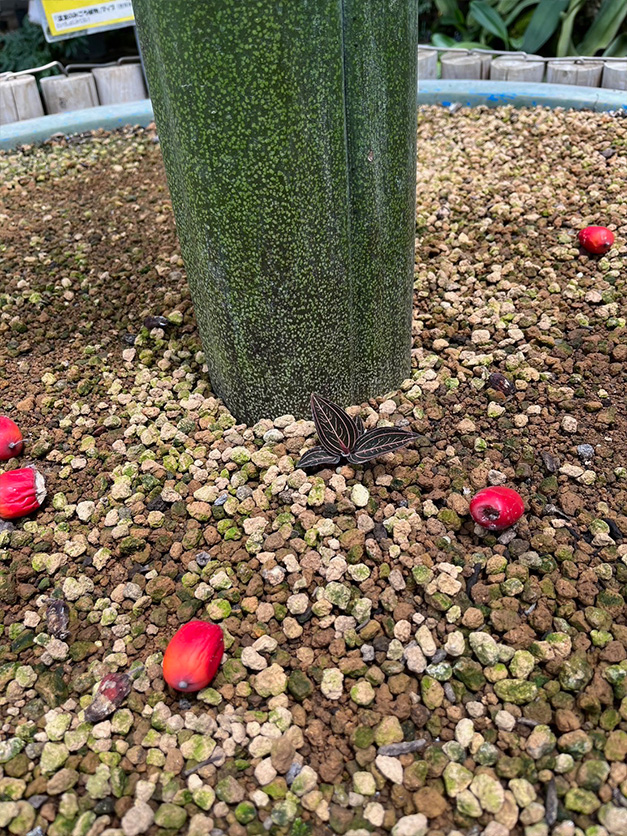 なんと6月30日には開花から400日になります。まだ果序が立っていることに驚きです!とはいえ、黒ずんだり赤く熟した果実が周辺に落ち、分譲依頼に合わせてサンプリングしたため、一層さみしい姿になりました。