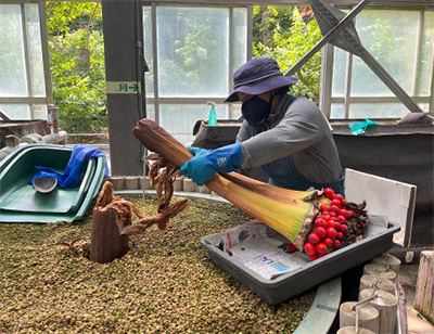 イモの無事を確認して笑顔の遊川さん。